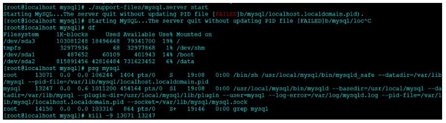 ps aux|grep mysql|awk '{print $2}'|xargs kill -9