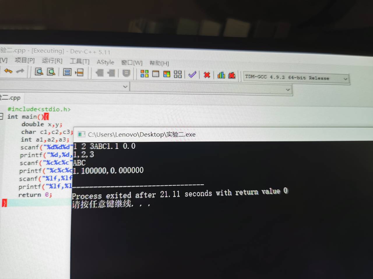 printf("y=%d,z=%d\n",y,x);