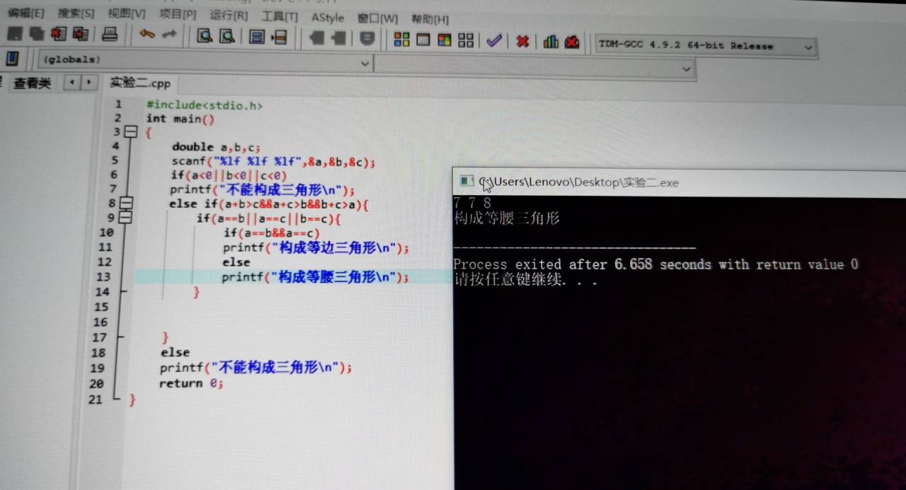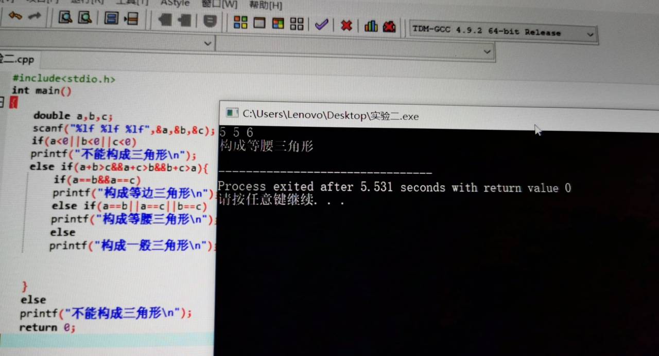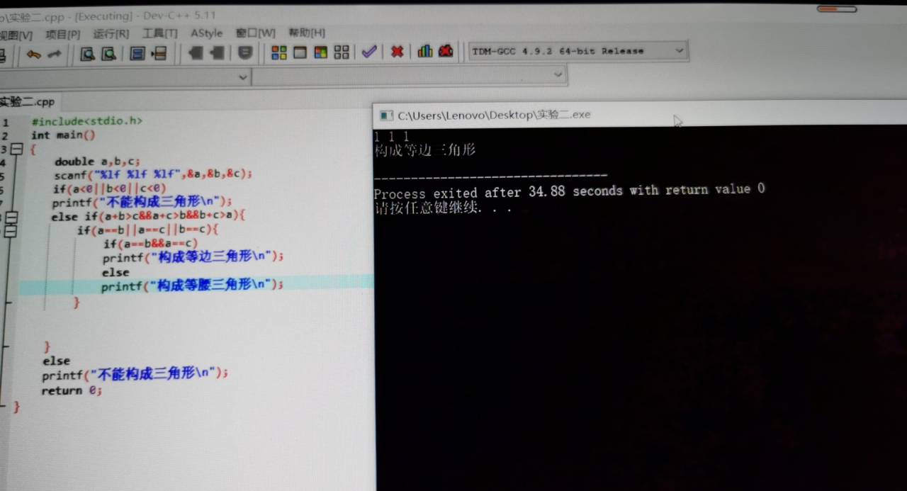 printf("构成等腰三角形\n");