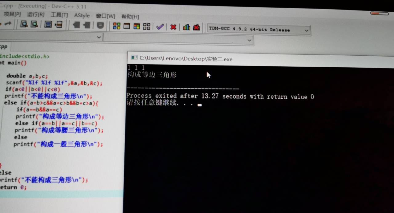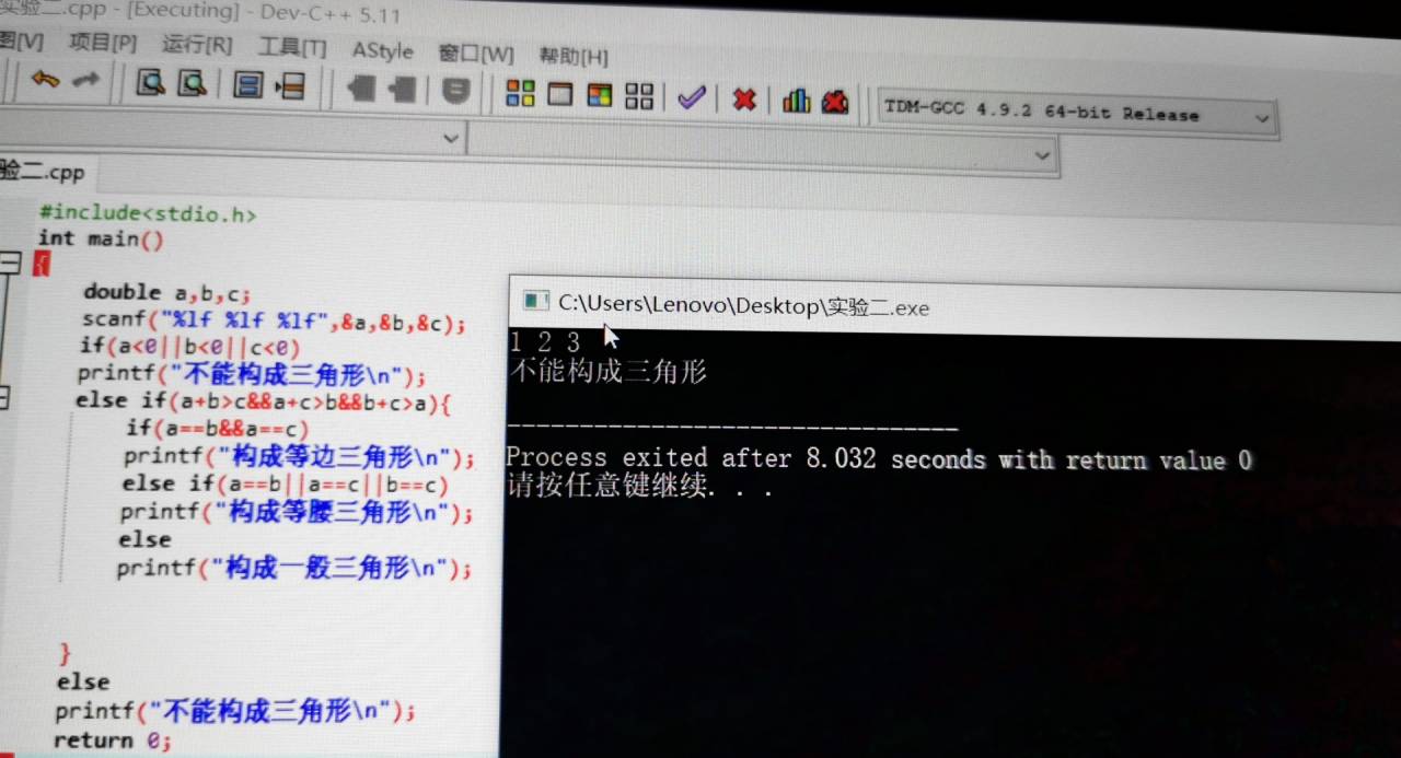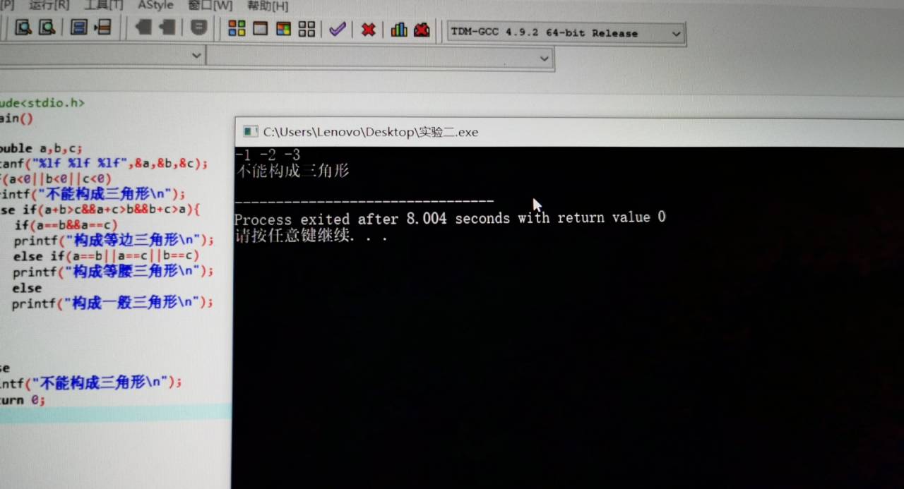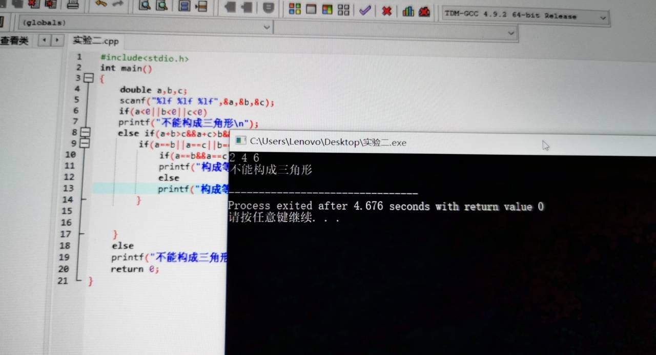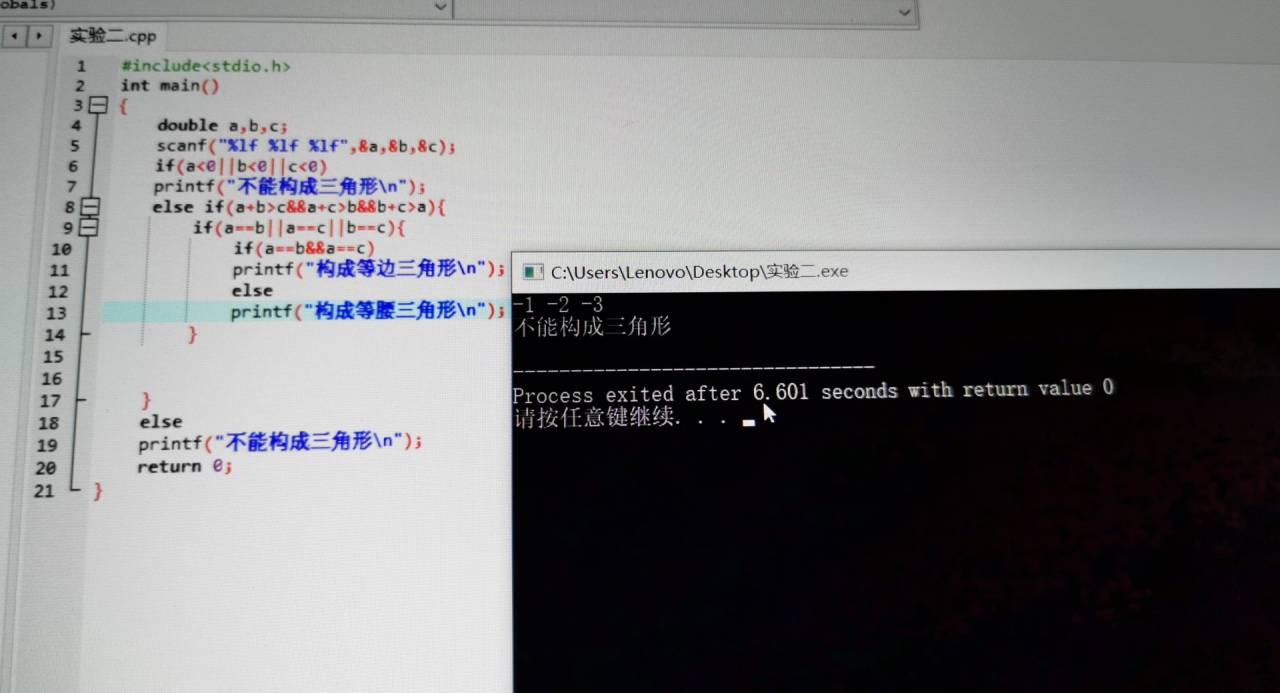 printf("不能构成三角形\n");