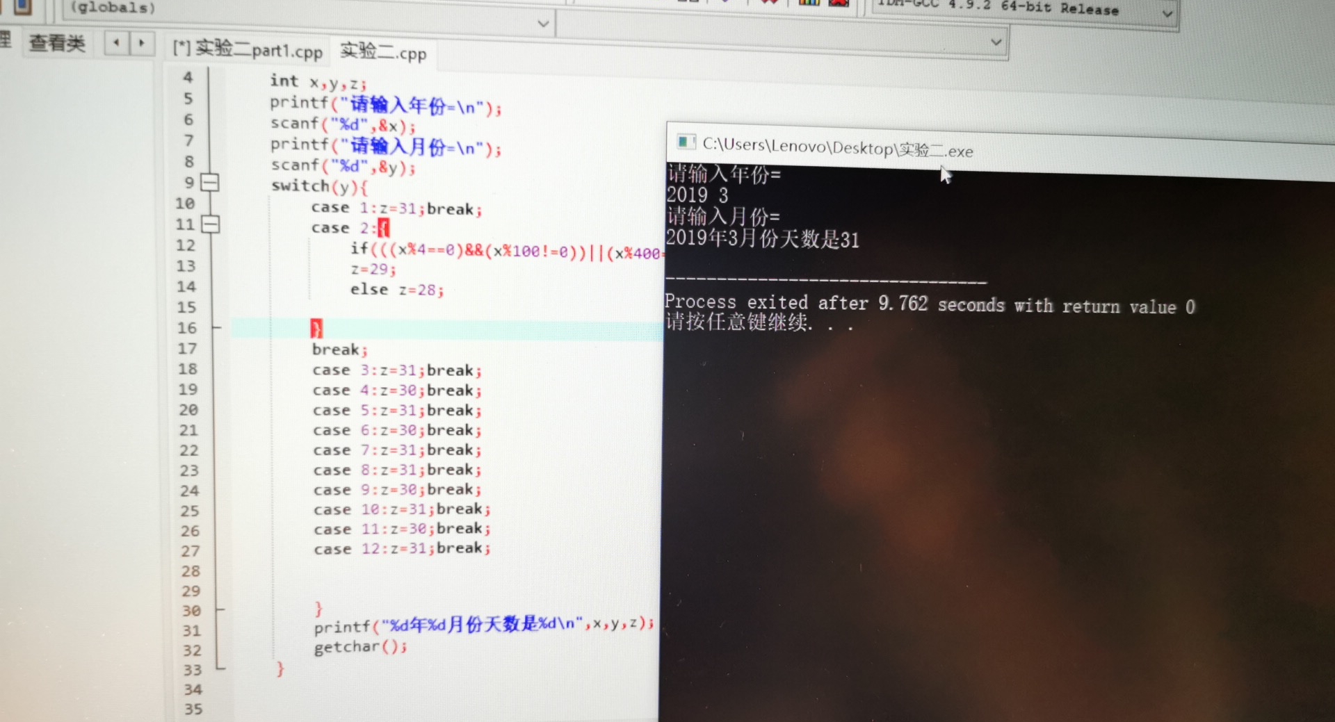 printf("%d年%d月份天数是%d\n",x,y,z);