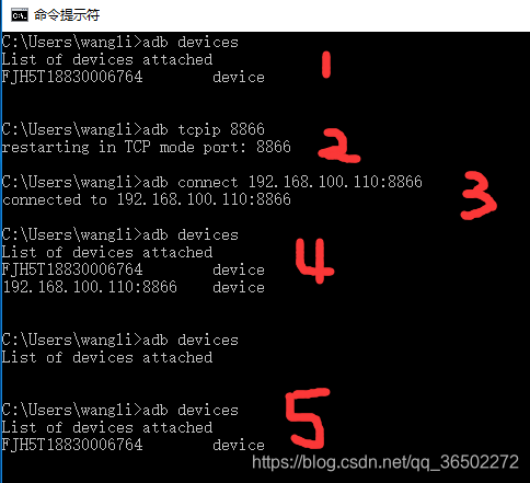 C:\Users\wangli>adb devices