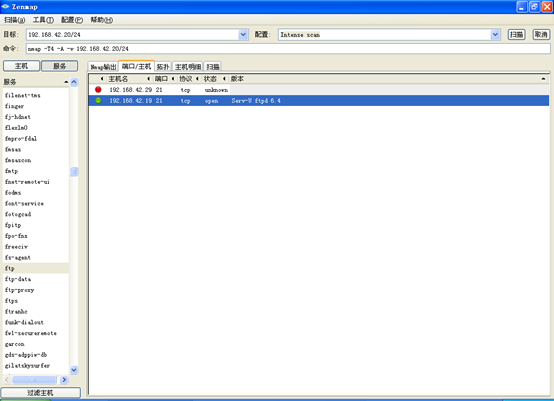 在实验楼上网的局域网内,请扫描出来,哪些机器开启了ftp服务,哪些机器开启了远程桌面连接服务,并附截图证明。
