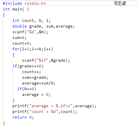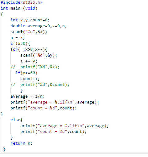 本题要求编写程序,计算学生们的平均成绩,并统计及格(成绩不低于60分)的人数。题目保证输入与输出均在整型范围内。