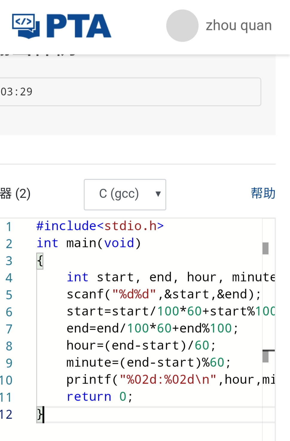 1 部分正确:"%02d:%02d\n"不明白其中的含义。在定义的时候定义了四个变量。由于输出格式的要求,需要在2前面加个0