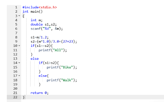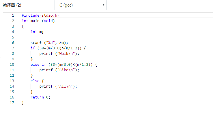 - 2.我的代码中只用了一个表达式(50+(m/3.0)>(m/1.2)来进行运算,十分简单。