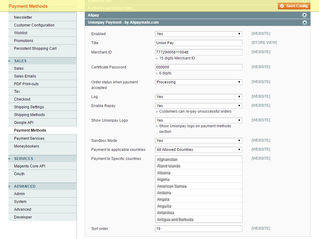 Magento银联支付(Unionpay),后台设置(英文语言)