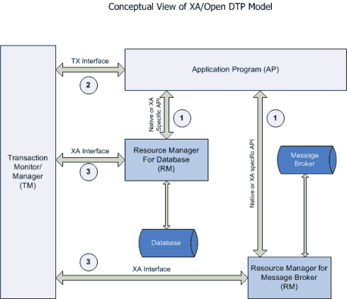 图1.XA规范下的分布式事务各类参与者之间的关系