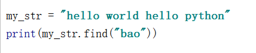 刚刚我们讲了str在my_str中的情况,假如我们要查找的str不在my_str中的时候,会怎么样呢?接下来我们来时机演示一下: