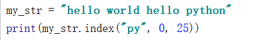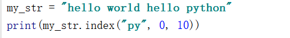 格式:my_str.index(str,start=0,end=len(mystr))