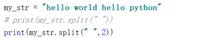 格式:my_str.split(str=' ',2)