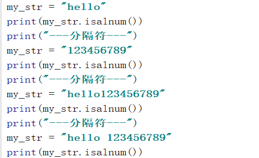 方法说明:如果mystr所有字符都是字母或数字则返回True,否则返回False