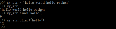 格式:my_str.rfind(str,start=0,end=len(mystr))