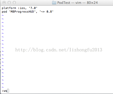 注意:键盘输入 :后,才能输入wq。回车后发现PodTest项目总目录中多一个Podfile文件