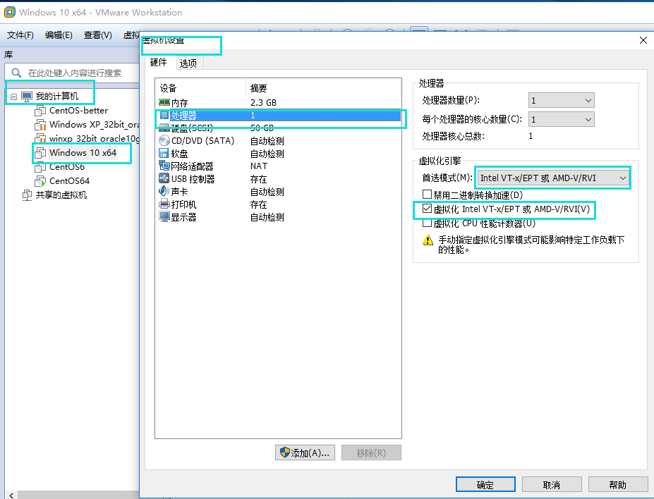 3.VMWare中虚拟机系统开启虚拟化的方法: