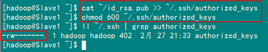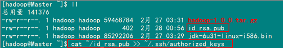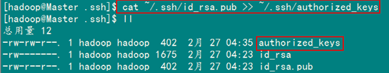 接着在Master节点上做如下配置,把id_rsa.pub追加到授权的key里面去。