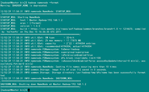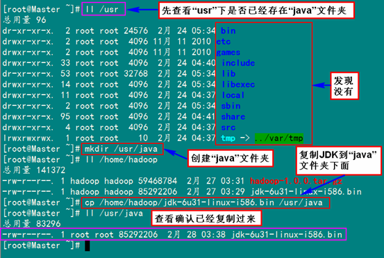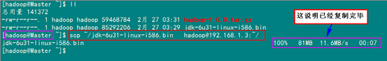 上图中,用"hostname"查"Master"机器的名字为"Master.Hadoop",与我们预先规划的一致。