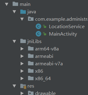 4、在src/main下建立一个叫做jniLibs的文件夹,并把解压后内的文件夹靠进去,如下图: