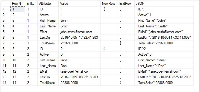Select @JSON = @JSON+NewRow+JSON+EndRow,@Head = Head From cteBld, cteSum