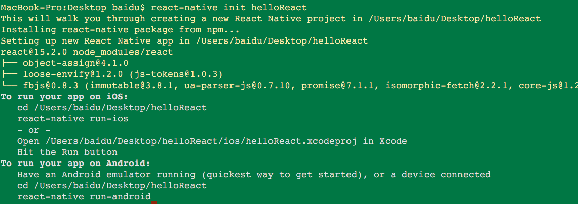 看完了上述教程后,相信聪明的你,已经学会了如何搭建一个简单的react-native-ios的demo,那么这篇文章的课后作业就是自己尝试搭建一个reactnative的helloworld。