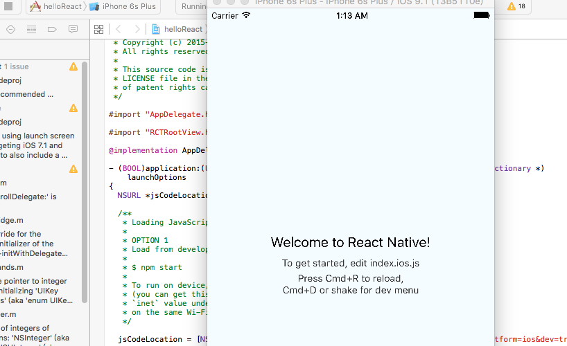 然后,就生成了我们的IOS工程-----helloReact,如图2.2.3: