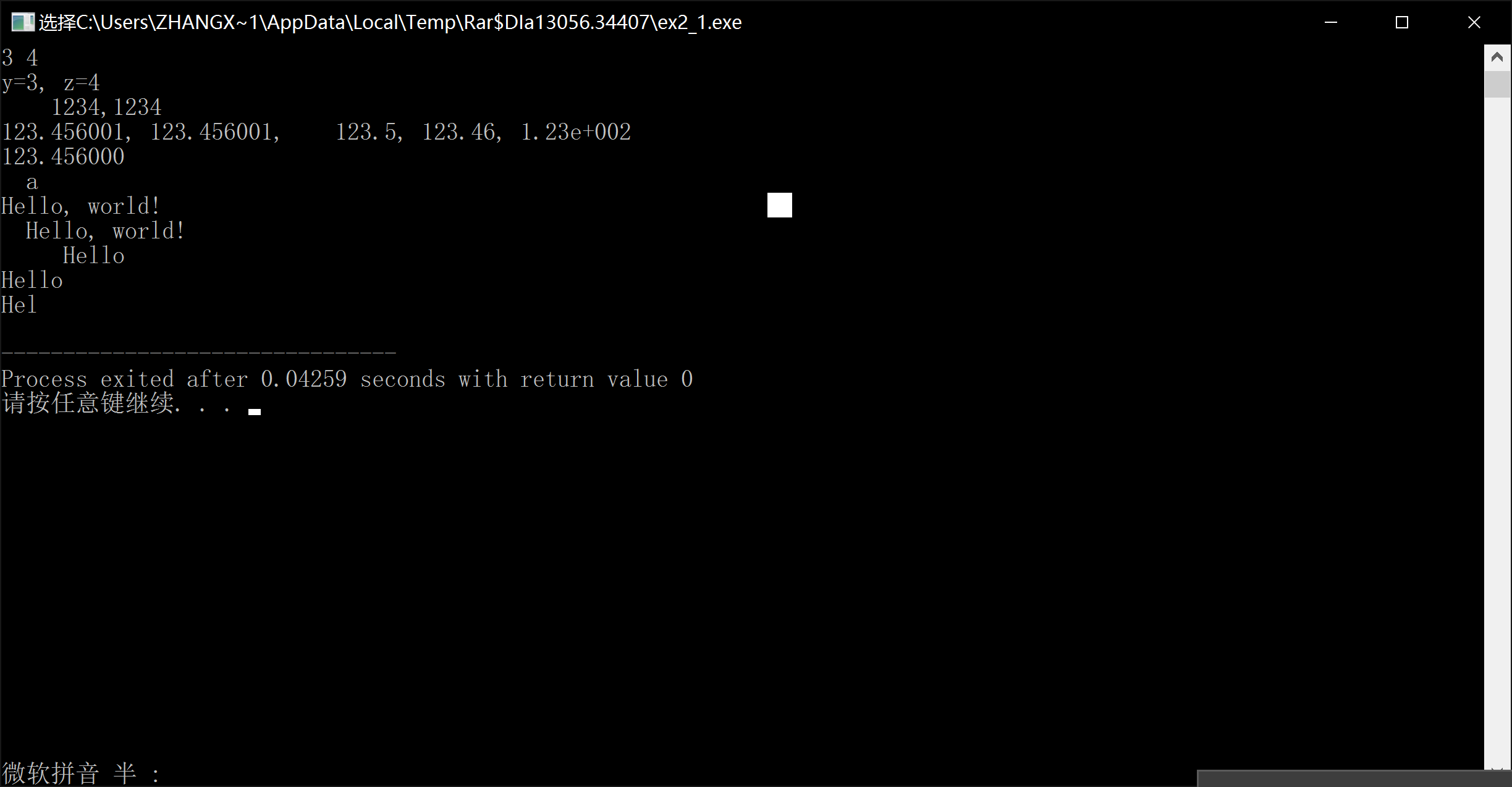 printf("y=%d, z=%d\n", y,z);