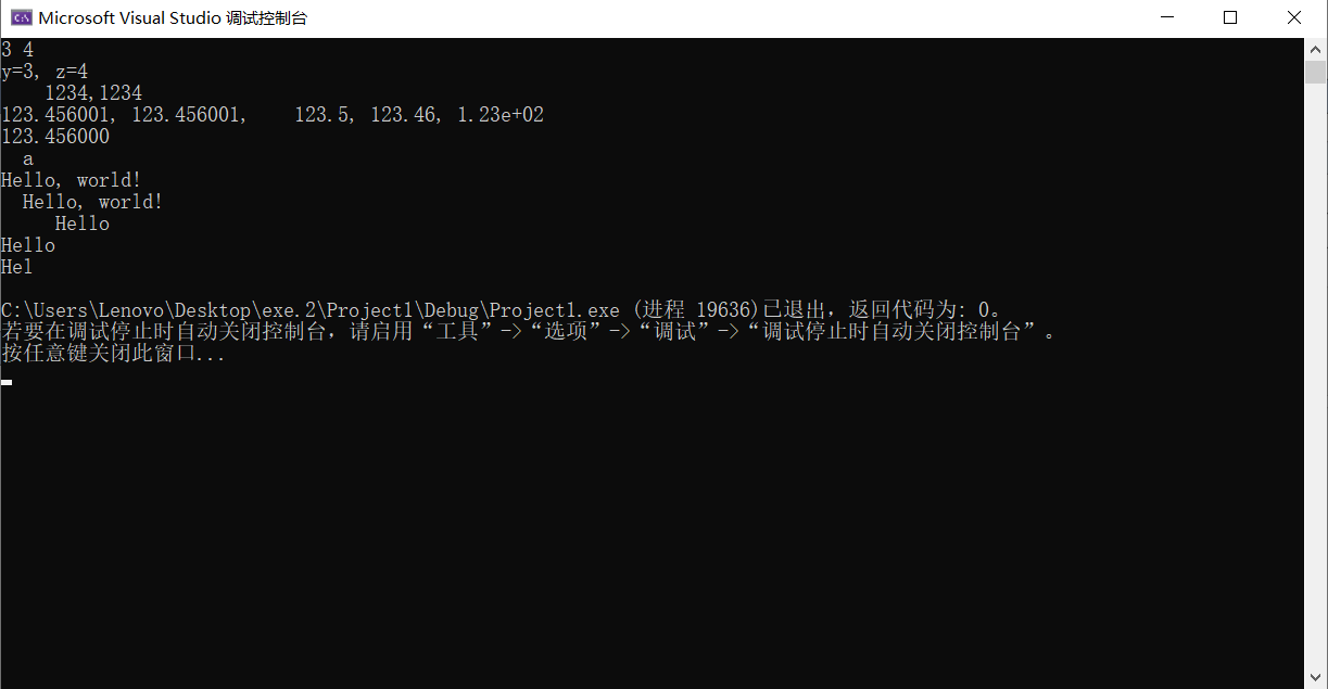 printf("y=%d, z=%d\n", y,z);