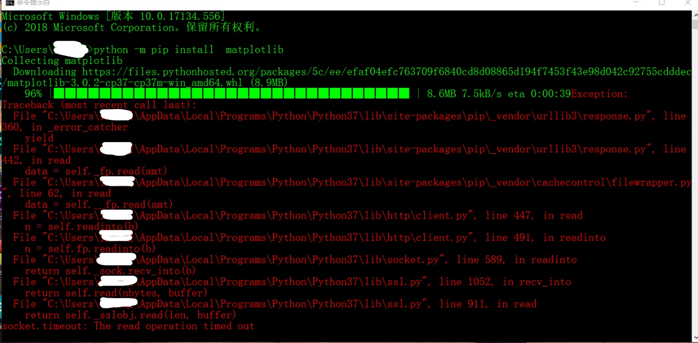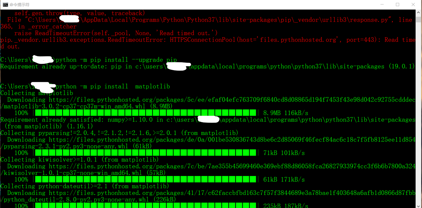 之所以安装matplotlib出现错误,很有可能没有更新pip,更新之后问题解决(PS:注意网路通畅)