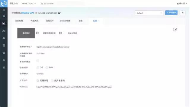 以源码仓库为起点,开发人员频繁提交,每一次代码变更都要立即在流水线中传递;WiseBuild持续交付平台支持定时周期触发,代码变更检查以及Webhook等多种触发方式。