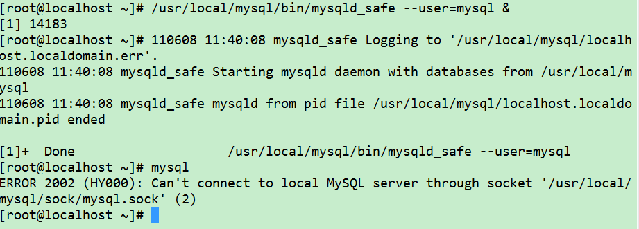 [root@localhost mysql]# chown -R mysql.mysql /usr/local/mysql/sock