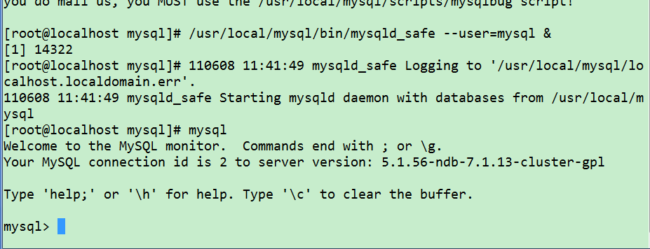 [root@localhost ~]# /usr/local/mysql/bin/ndbd