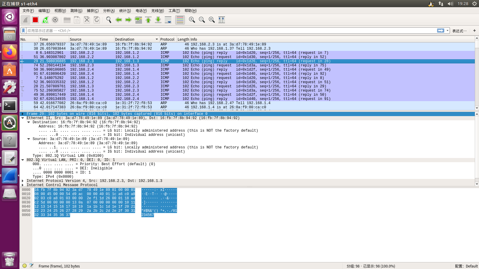 将主机4,5,6进入s2的包打上vlan tag,转发端口4