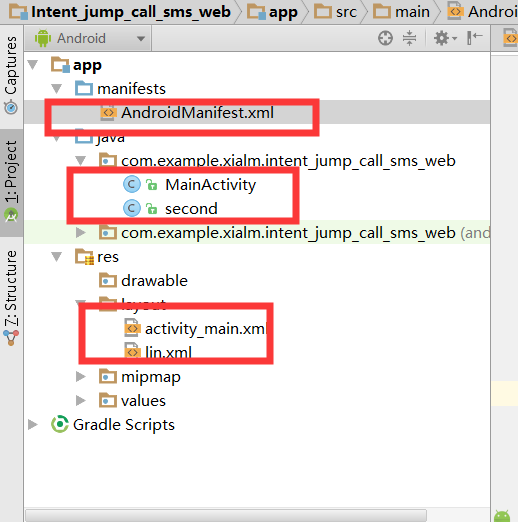 本次实例实现能够通过意图进行页面的跳转,拨打电话,发送短信,跳转网页,