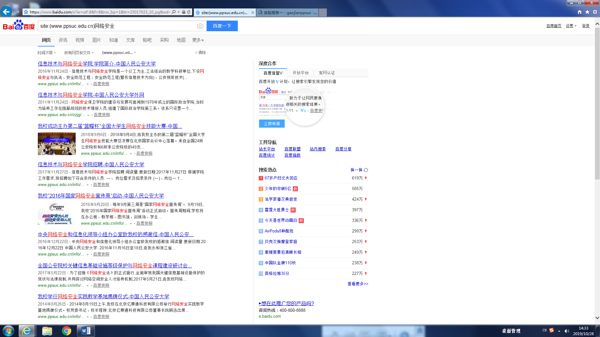 用百度或google搜索www.ppsuc.edu.cn中所有包含“网络安全”的网页。(附截图)