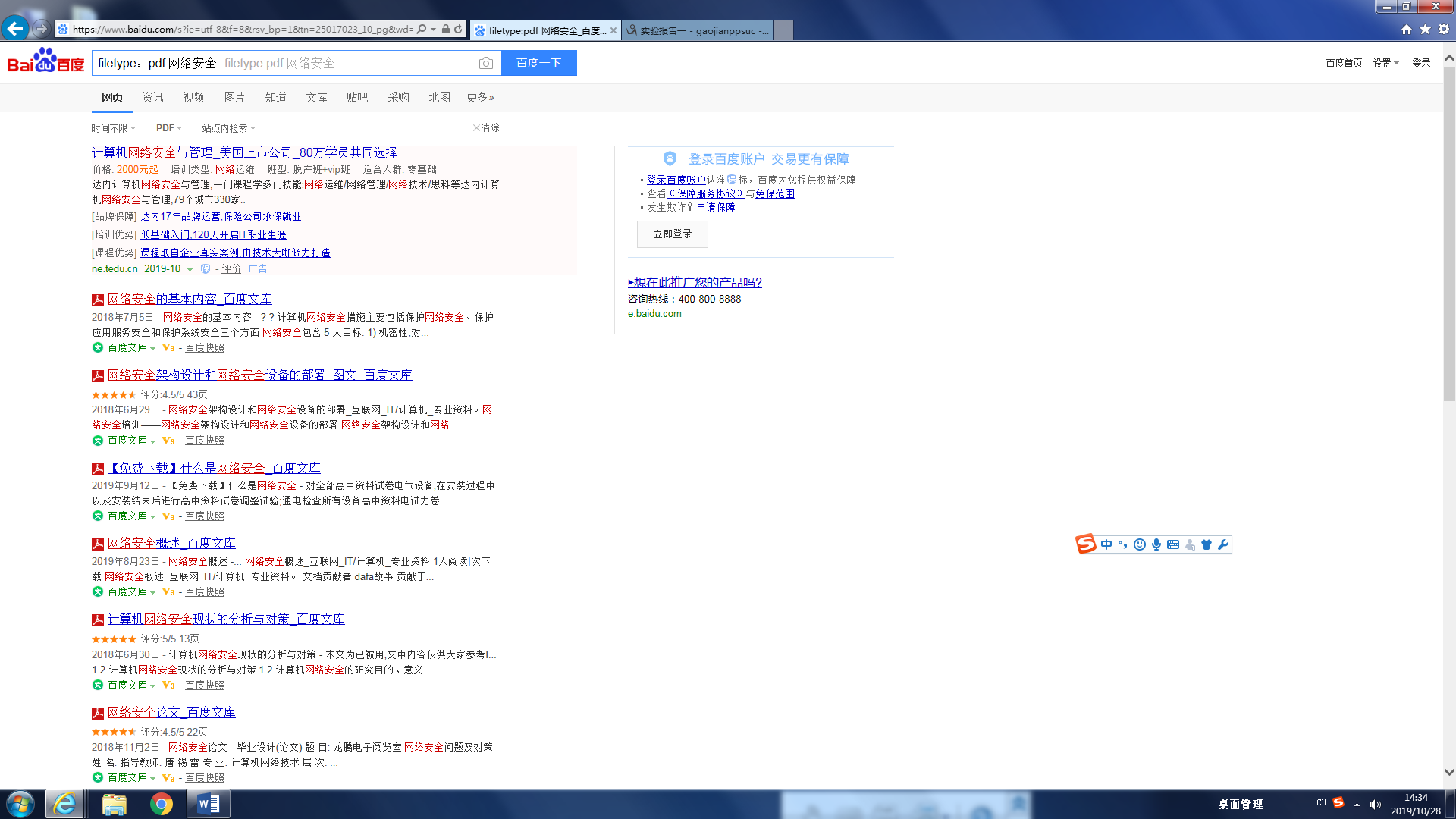用百度或google搜索所有包含“网络安全”的pdf文档(附截图)