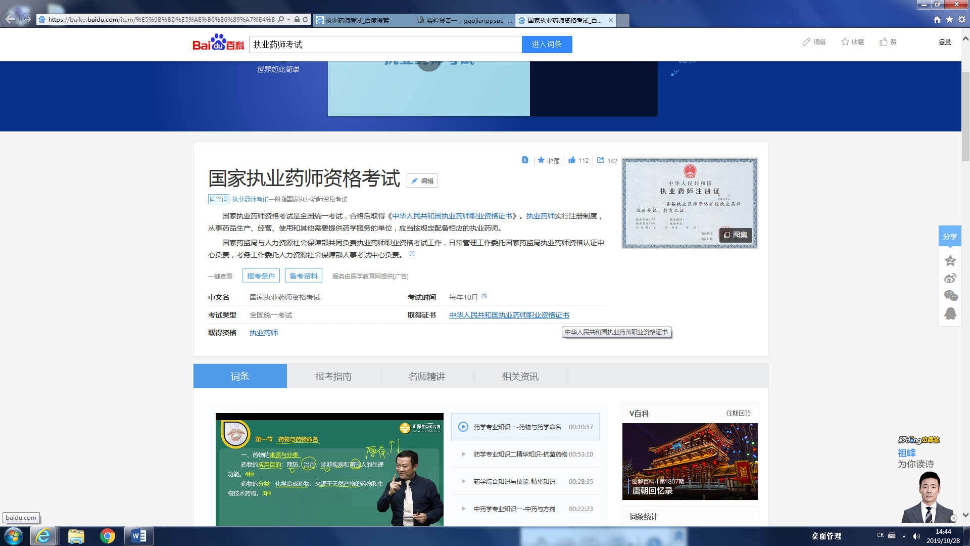 小丽是药学专业的一名本科生,现已从事药学专业的工作,目前她想考取一个资格证,但是报名条件中要求其工作满三年。那么,小丽想考取的是什么证。(请回答并附截图证明。)