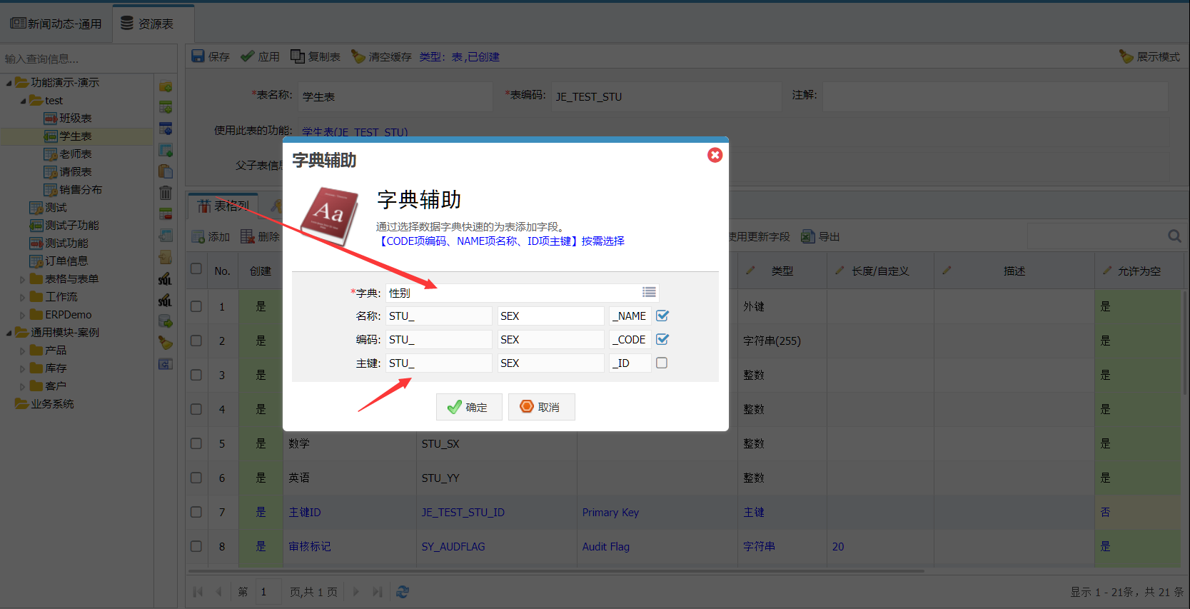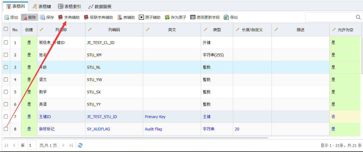 JEPLUS表字段的高级添加方式字典辅助,表辅助是在实际业务中很常用的一个功能,对于初学者来说可以把字典辅助理解为是一种借助其他字典来满足现在字典的功能,把表辅助理解为是一种表与表之间的外键关联。