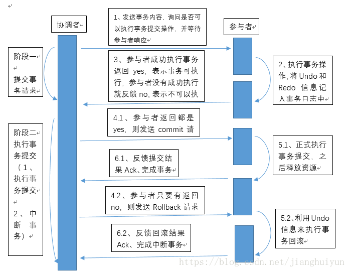 如果参与者成功执行了事务操作,那么就反馈给协调者Yes响应,表示事务可以执行;如果参与者没有成功执行事务,那么就反馈给协调者No响应,表示事务不可以执行。