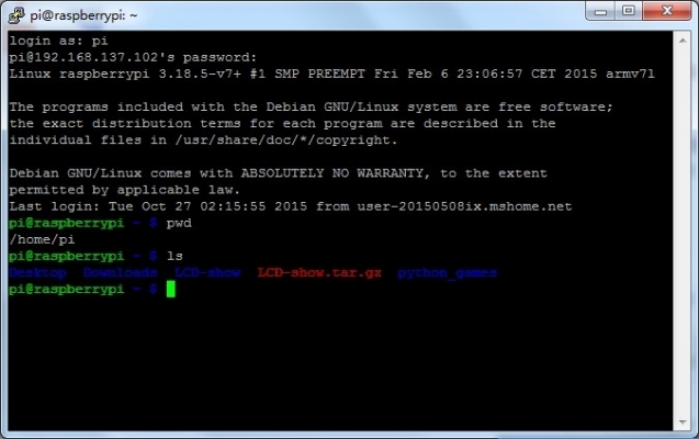 看详细信息又出来了,这样SSH就成功了,命令行可以完全的操控树莓派了,想让它做什么它就可以做什么了。