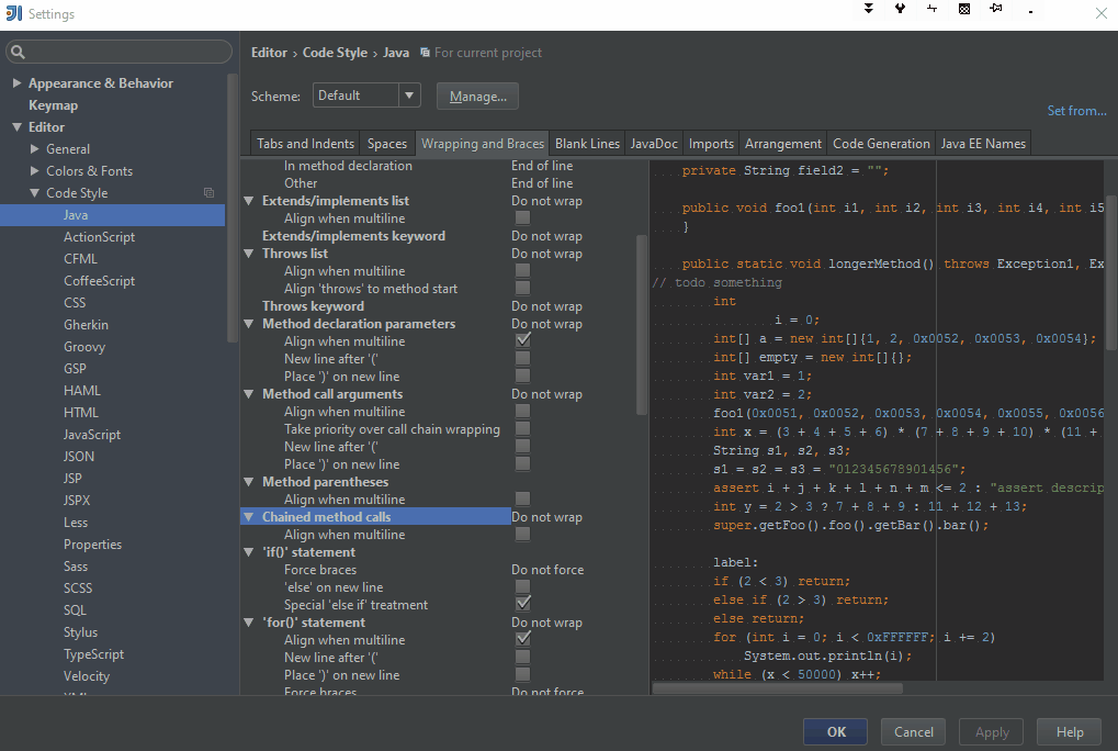 来源:https://stackoverflow.com/questions/38595138/wrapping-chained-method-calls-on-a-separate-line-in-intellij-for-java