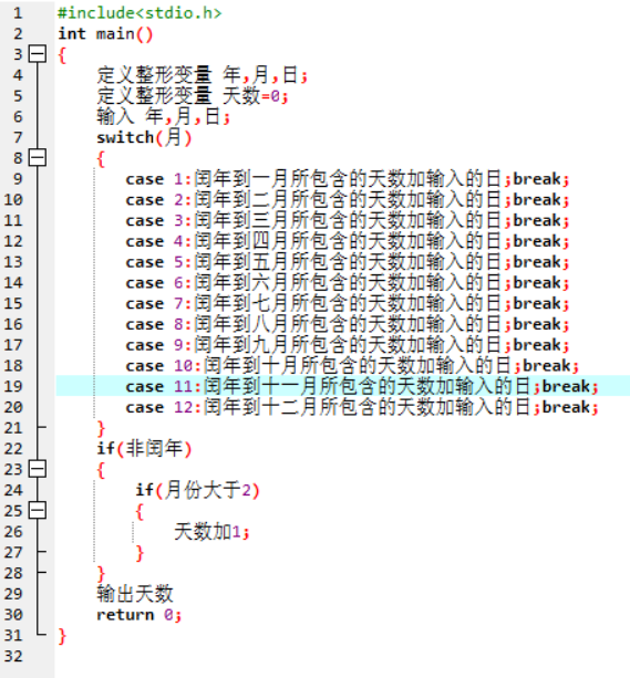 题目内容描述:本题要求编写程序计算某年某月某日是该年中的第几天。