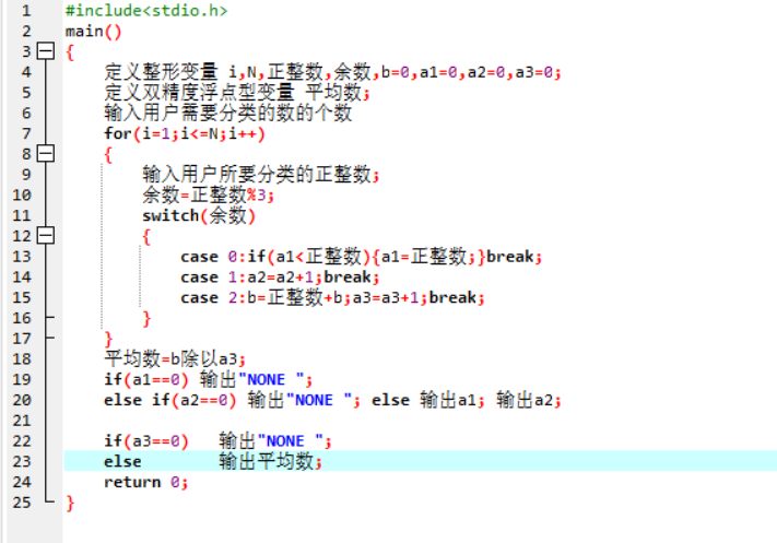 用了整形变量i,N,sum,a,b=0,a1=0,a2=0,a3=0和双精度浮点型变量average;