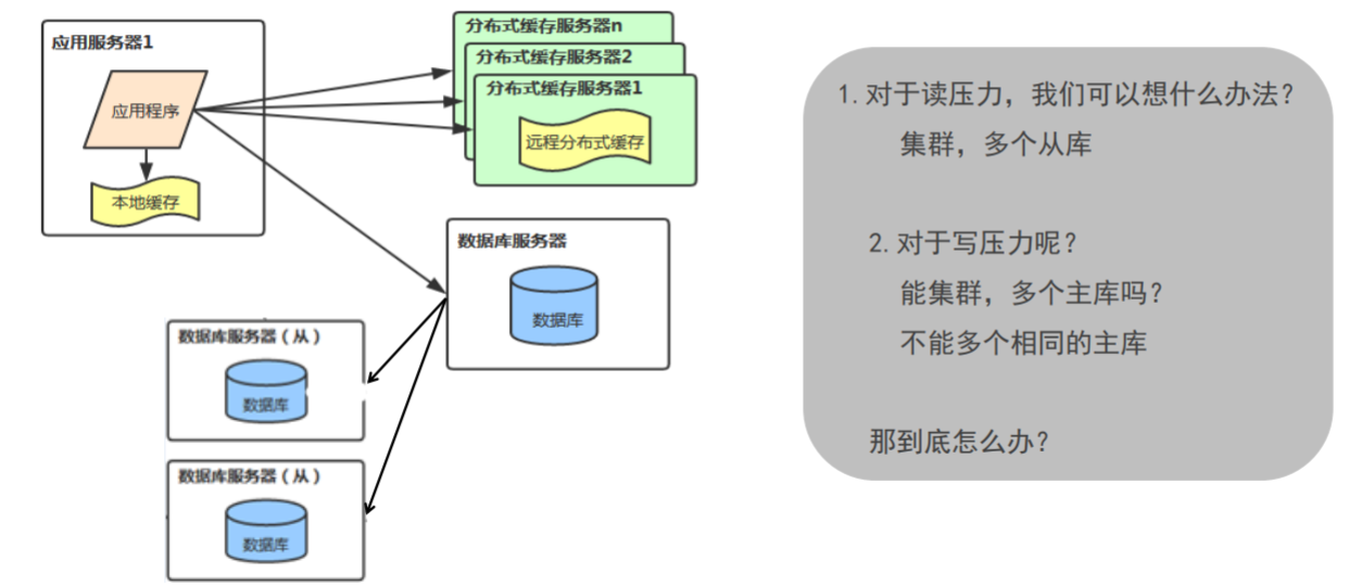 随着业务的发展,业务越来越复杂,应用的模块越来越多,总的数据量很大,高并发读写操作均超过单个 数据库服务器的处理能力怎么办?