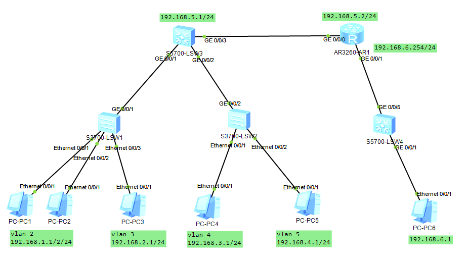 [sw3-Vlanif6]ip address 192.168.5.1 24