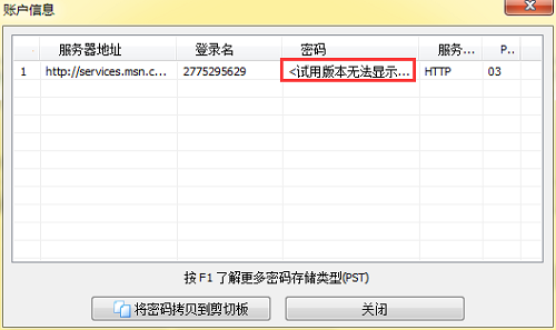 互联网菜单下只有一个“Outlook Mail 账户…”命令,该命令必须在联网状态下才可以使用,与Advanced Office Password Recovery主界面的MS Outlook按钮的功能一致。AOPR试用版无法显示Outlook密码,如下图所示: