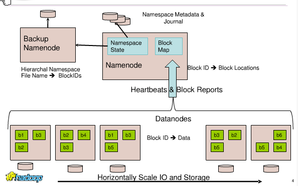 我们先回顾一下HDFS功能。HDFS实际上具有两个功能:命名空间管理(Namespace management)和块/存储管理服务(block/storage management)。