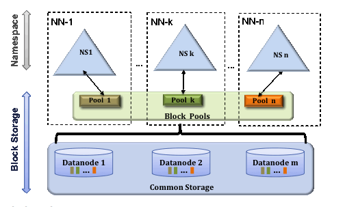当前HDFS中只有一组块。而Federation HDFS中有多组独立的块。块池(block pool)就是属于同一个命名空间的一组块。