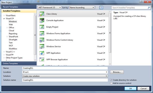 Step 1:- File->New->Project->Visual C# Projects->Class Library. Select your project name and appropriate directory click OK