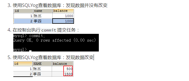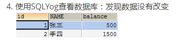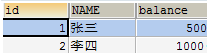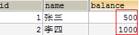 模拟张三给李四转500元钱,一个转账的业务操作最少要执行下面的2条语句: