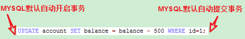 UPDATE account SET balance = balance - 500 WHERE id=1;